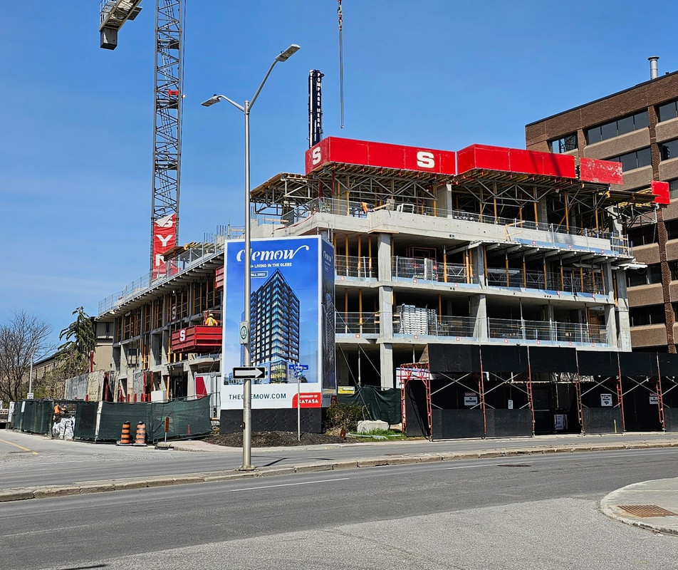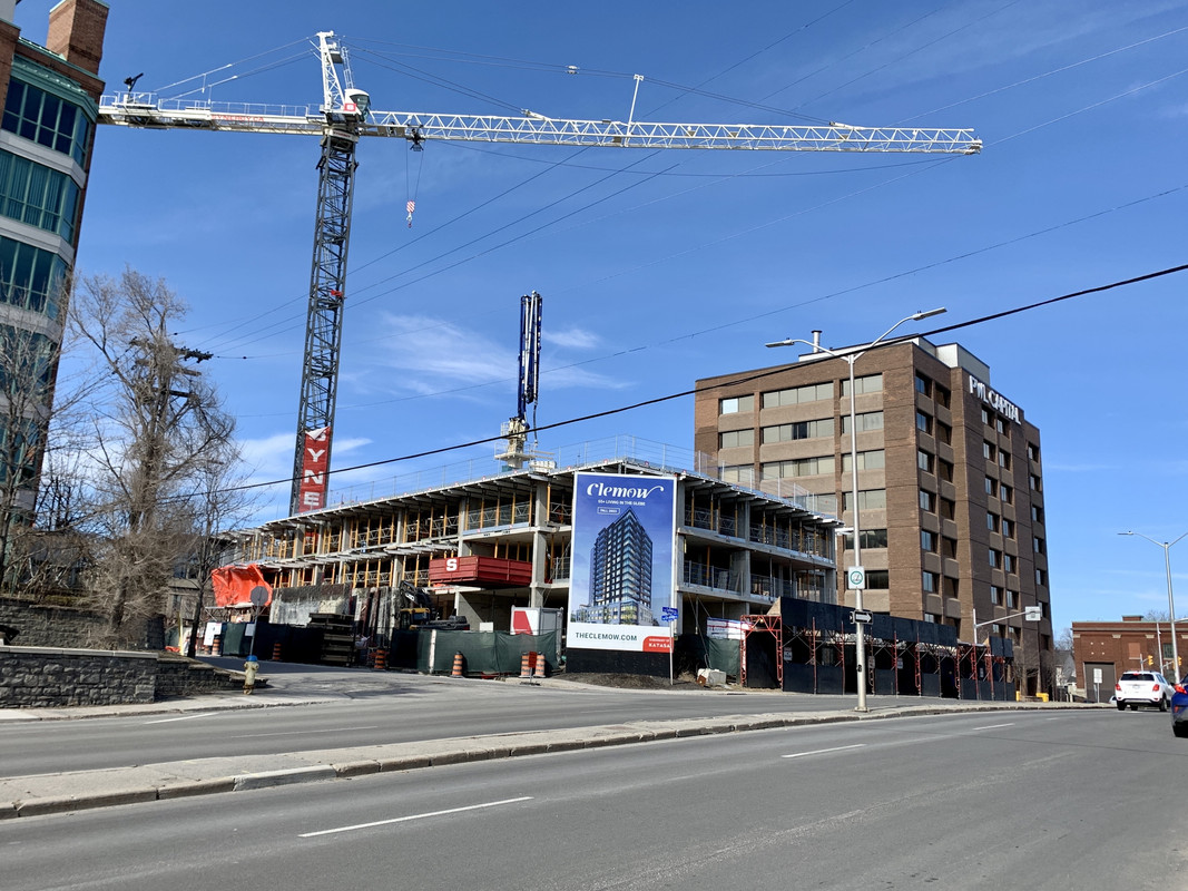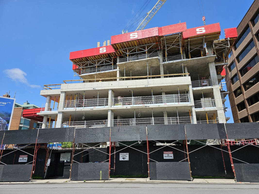 Edit - I had a closer look today, and it seems that the podium is aligned with the street, so the tower isnn no on a slight angle