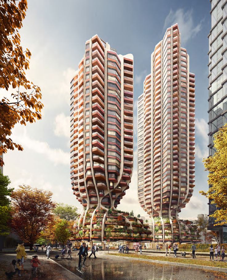 This looks to be a typical tower on podium design and the central public plaza seems to be completely enclosed with units above in the podium; the previous designs had multiple interior terraces and skylights above the plaza.