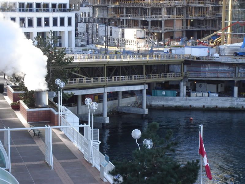 Looking north from the driveway of the Shaw Tower. The Fairmont Pacific Rim is to the right.