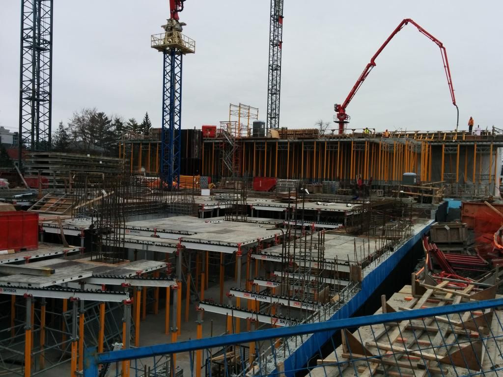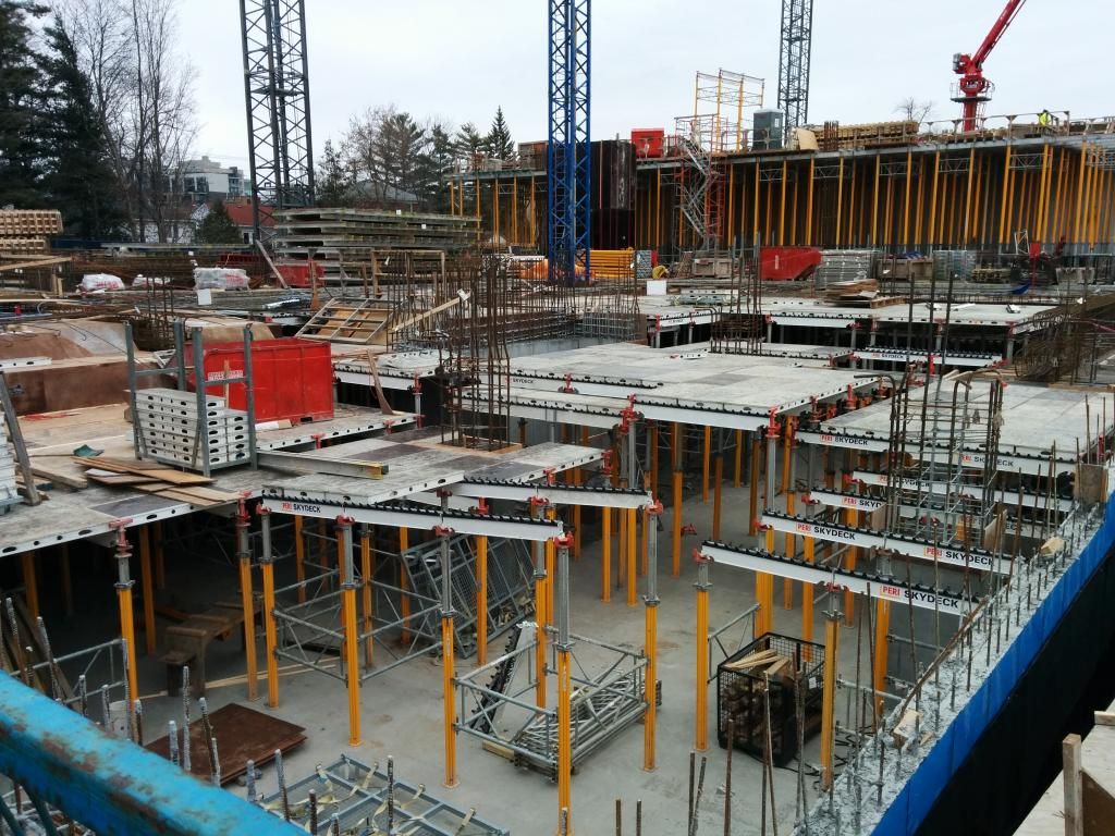 The Hydro towers will stay. The developer has a lease on the strip of land such that they can use it for parking, landscaping etc... Obviously you can't build there.