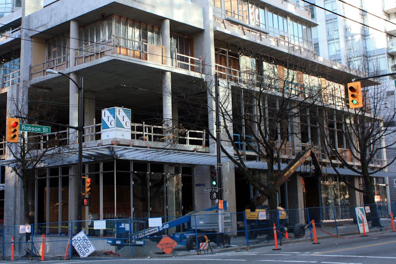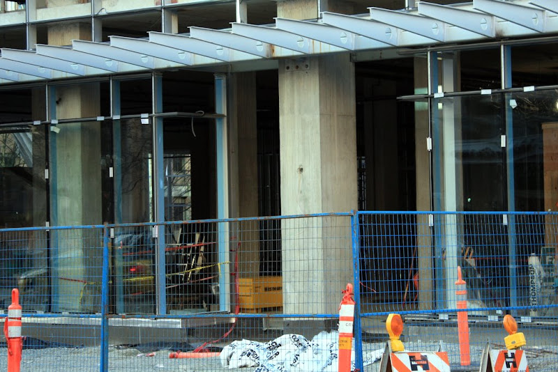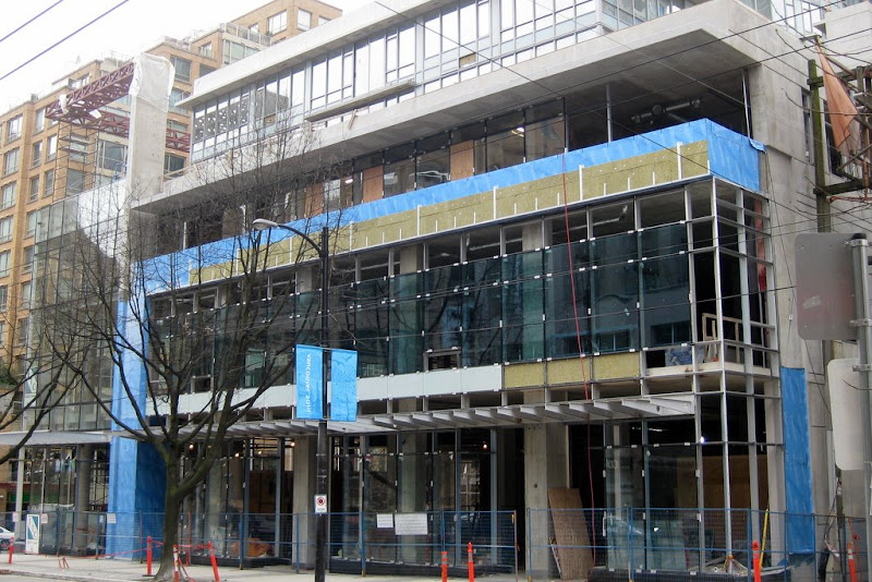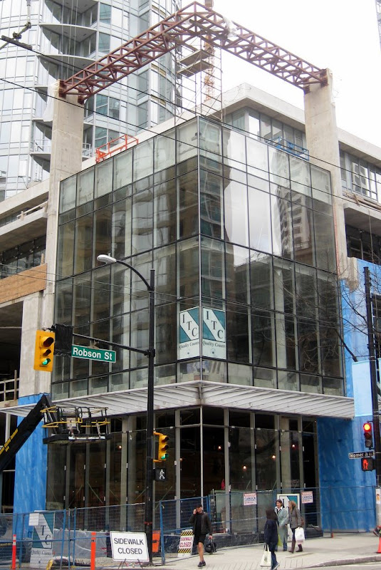 I hate the steel frame angle at the corner... Why not just raise the podium by another floor instead of faking the extra densty. It's like those crappy suburban podiums in coquitlam with the over-height canopies that pretend to be 2 stories high when clearly the roof is barely 4 metres above ground.