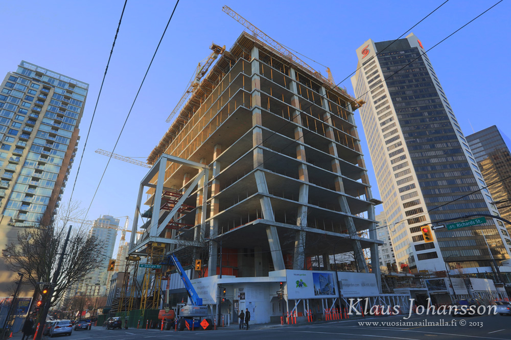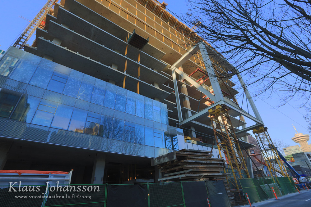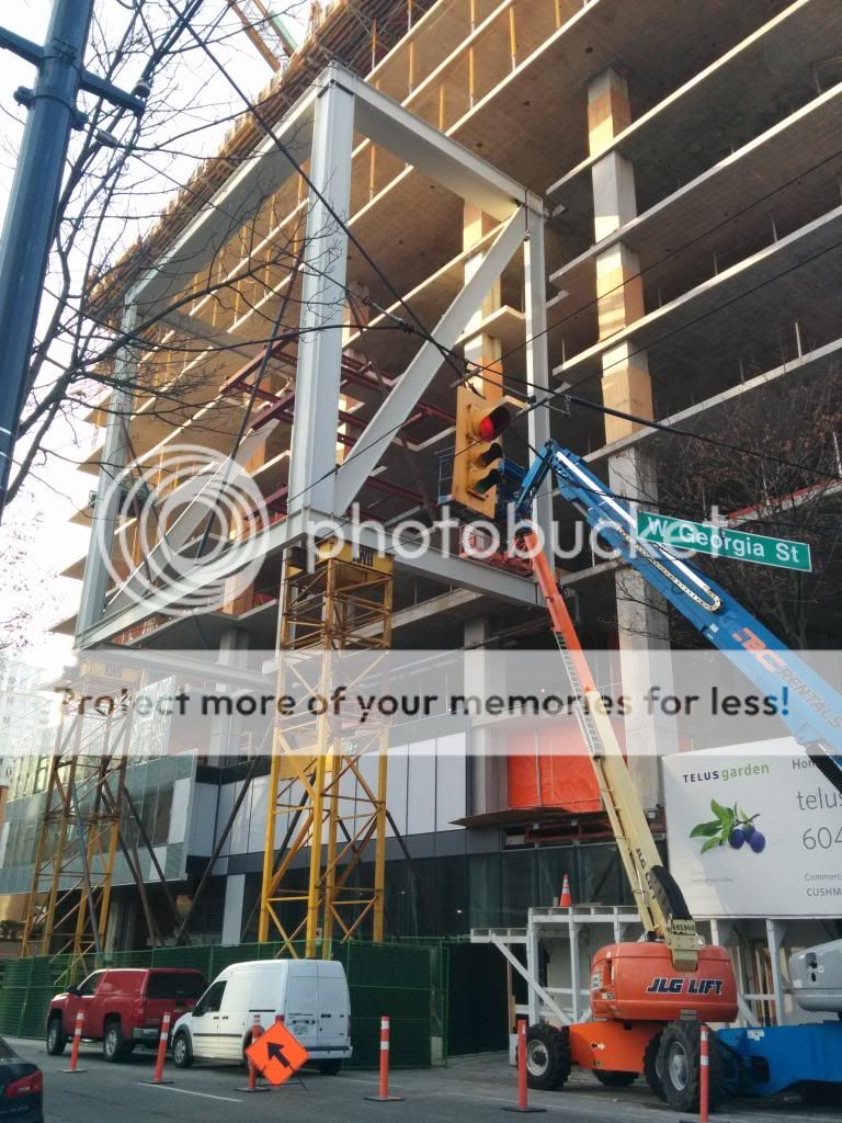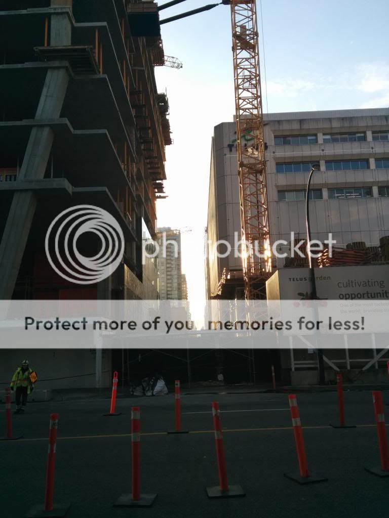 Hopefully Telus will be more diligent with the upkeep of the LED lights on the new tower than it has been with the LED light display on the William Farrell Building renovation (the added curtain wall has coloured LEDs that shine inwards to the older building, but they only operated for about a year after the reno).