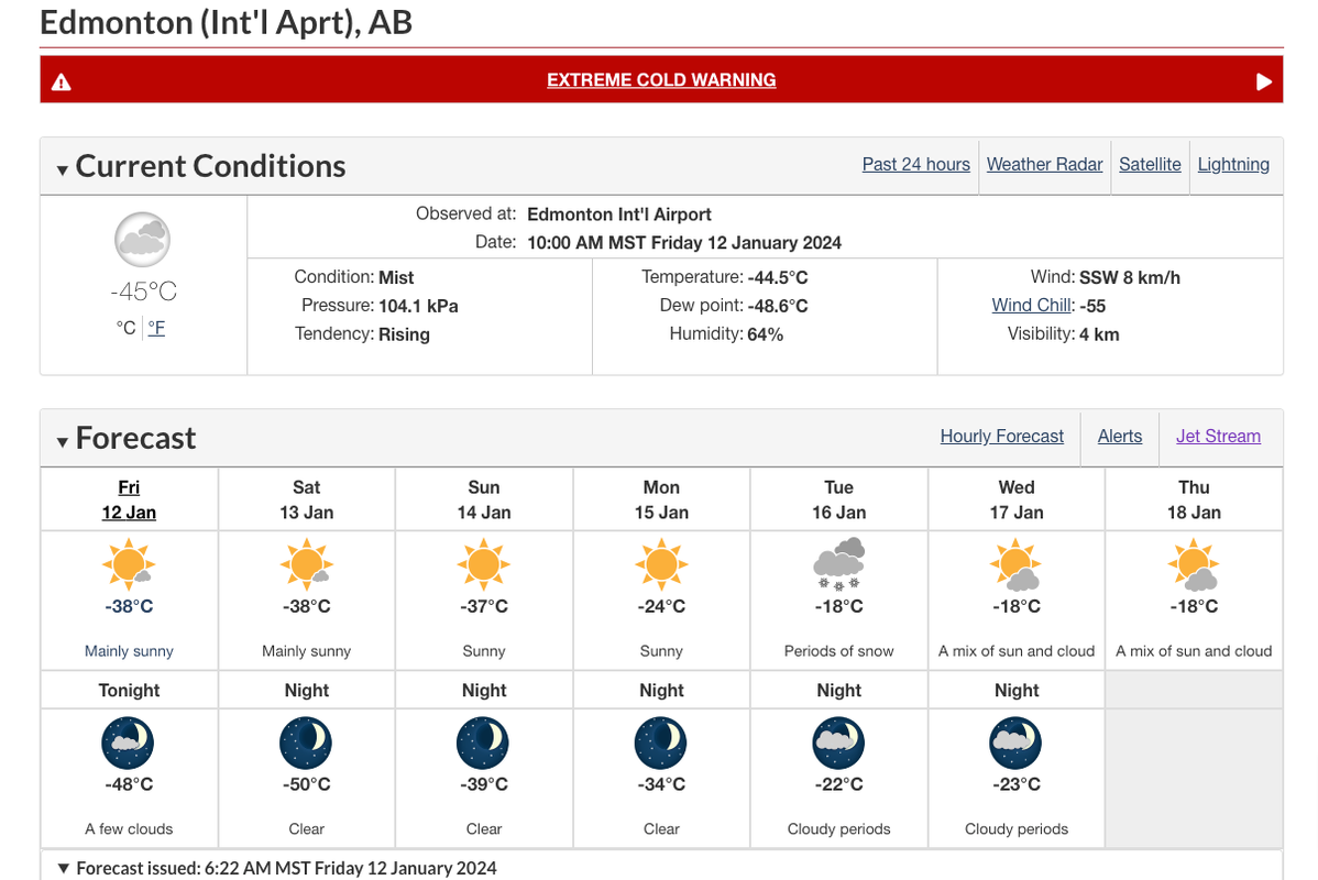 If we get -50°C, then that is a 138 year record smashed. Coldest recorded temperature in Edmonton was -49.4°C in 1886.