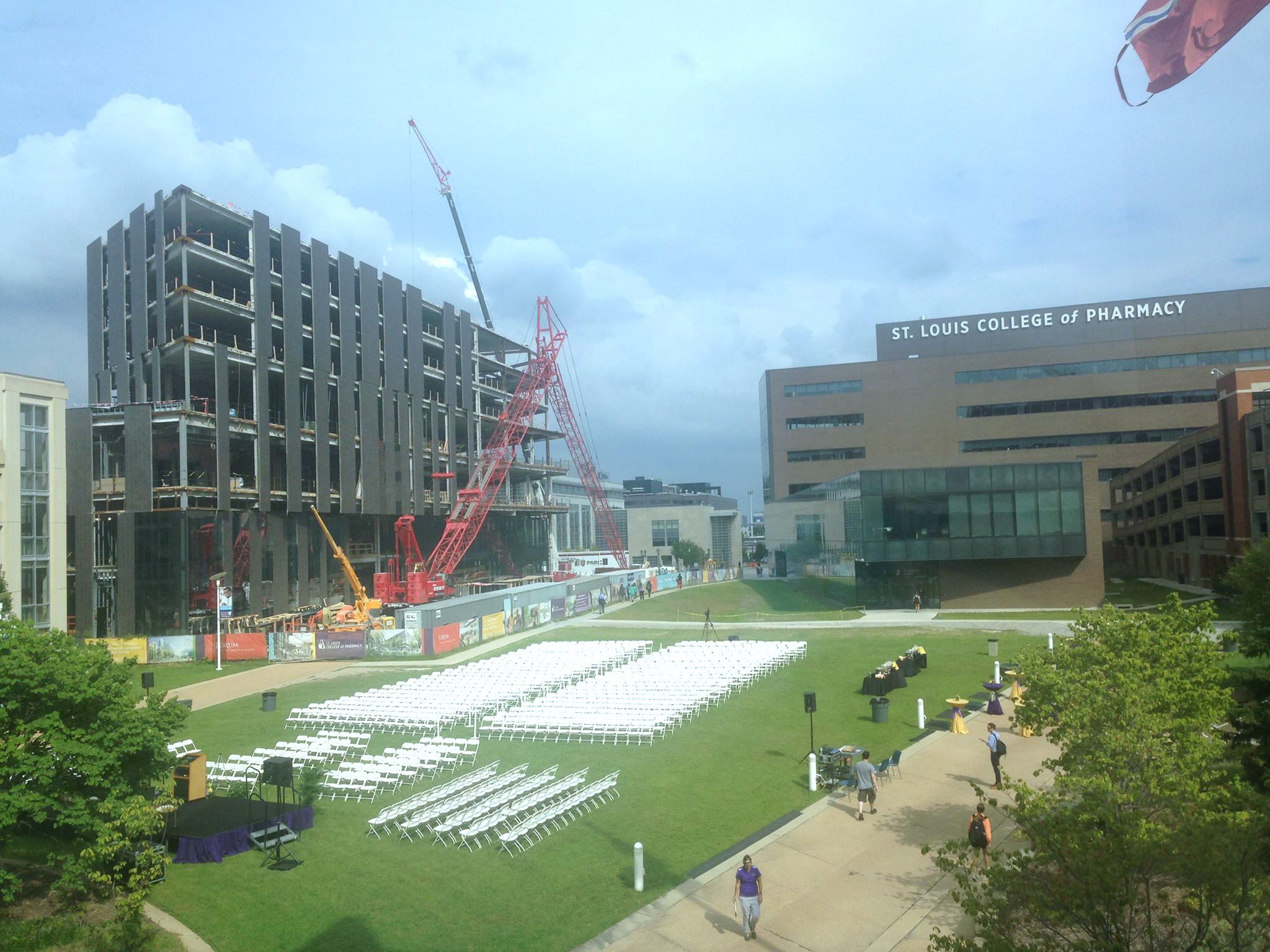 St. Louis College of Pharmacy's Phase II mixed-used building - student center, residential and gymnasium - is nearly complete.