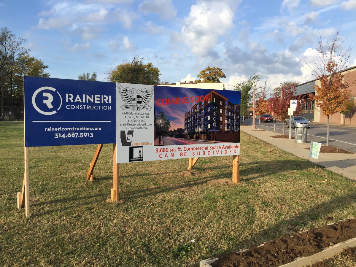 A residential proposal breaks ground in The Grove (Manchester Ave. Strip). Complex being developed on vacant land.