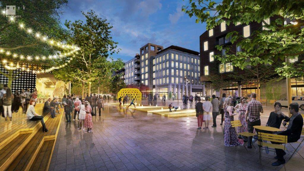 with 580 new residential units and over 300,000 square feet of new and redeveloped commercial space providing creative office, walkable restaurants, cafes, shops, open green space, public plazas and more. The initial office developments