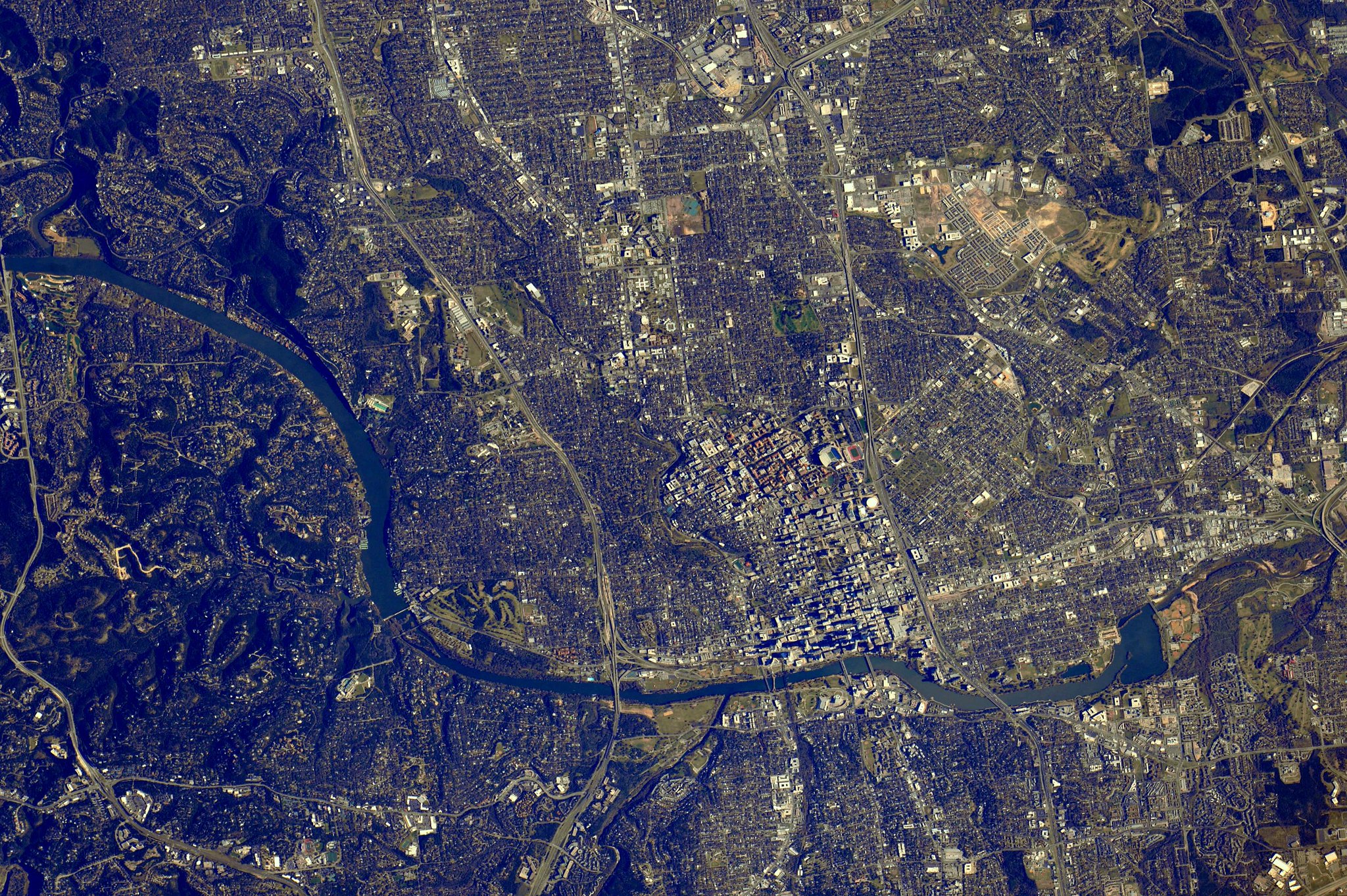 One of the astronauts (an Austinite ) in the middle of his 6 month stay on the International Space Station, just took a photo of Austin from the station as it flew over.
