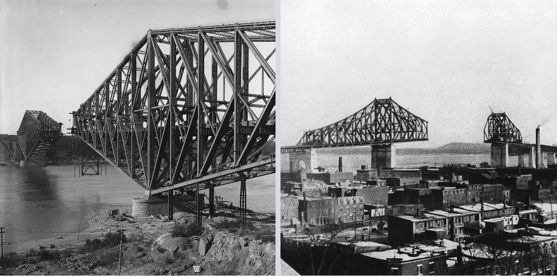 Le pont de Québec au moment de sa construction. Avec une portée libre de 549 m, il est désormais le pont de type cantilever le plus long au monde.