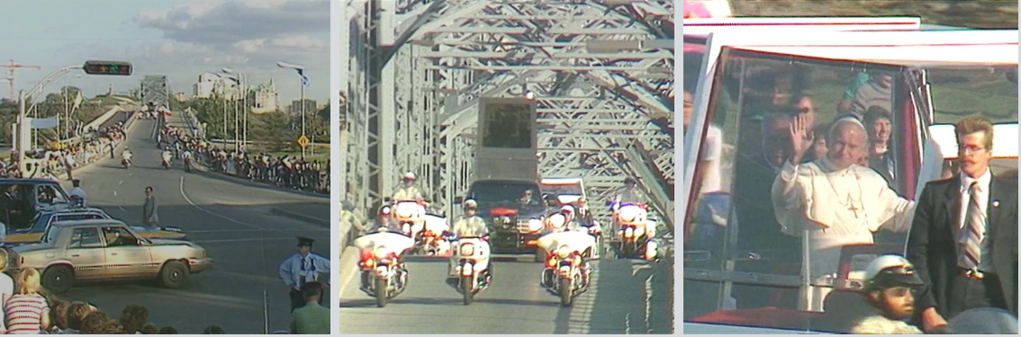 La papemobile traverse la rivière des Outaouais en empruntant le pont Alexandra, en septembre 1984.