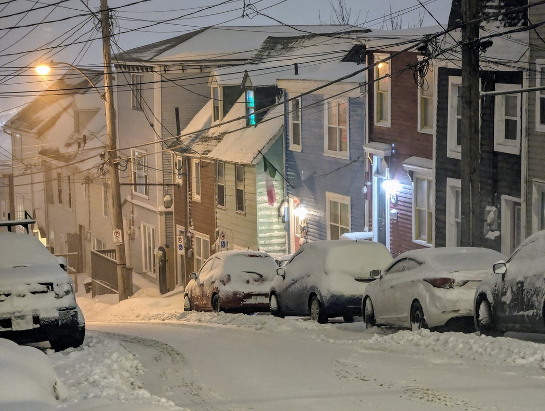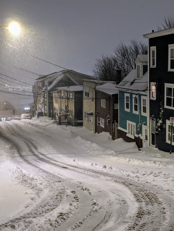 Cold and blustery in Halifax tonight. Looks like we received about 20cm of snow, though it's difficult to estimate due to the drifting. Shearwater is saying -5°C with a wind chill of -12°C with wind gusts to 44 km/h at 7pm, and YHZ is -7°C with wind chill -17°C and wind gusts of 61 km/h.