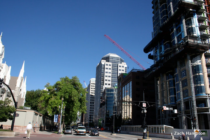 Huge changes occurred on the block in the mid-'70s, when "the majority of the block was bought up and torn down to make way for the new ZCMI Center. The corners hang on, but we lost a lot of buildings."