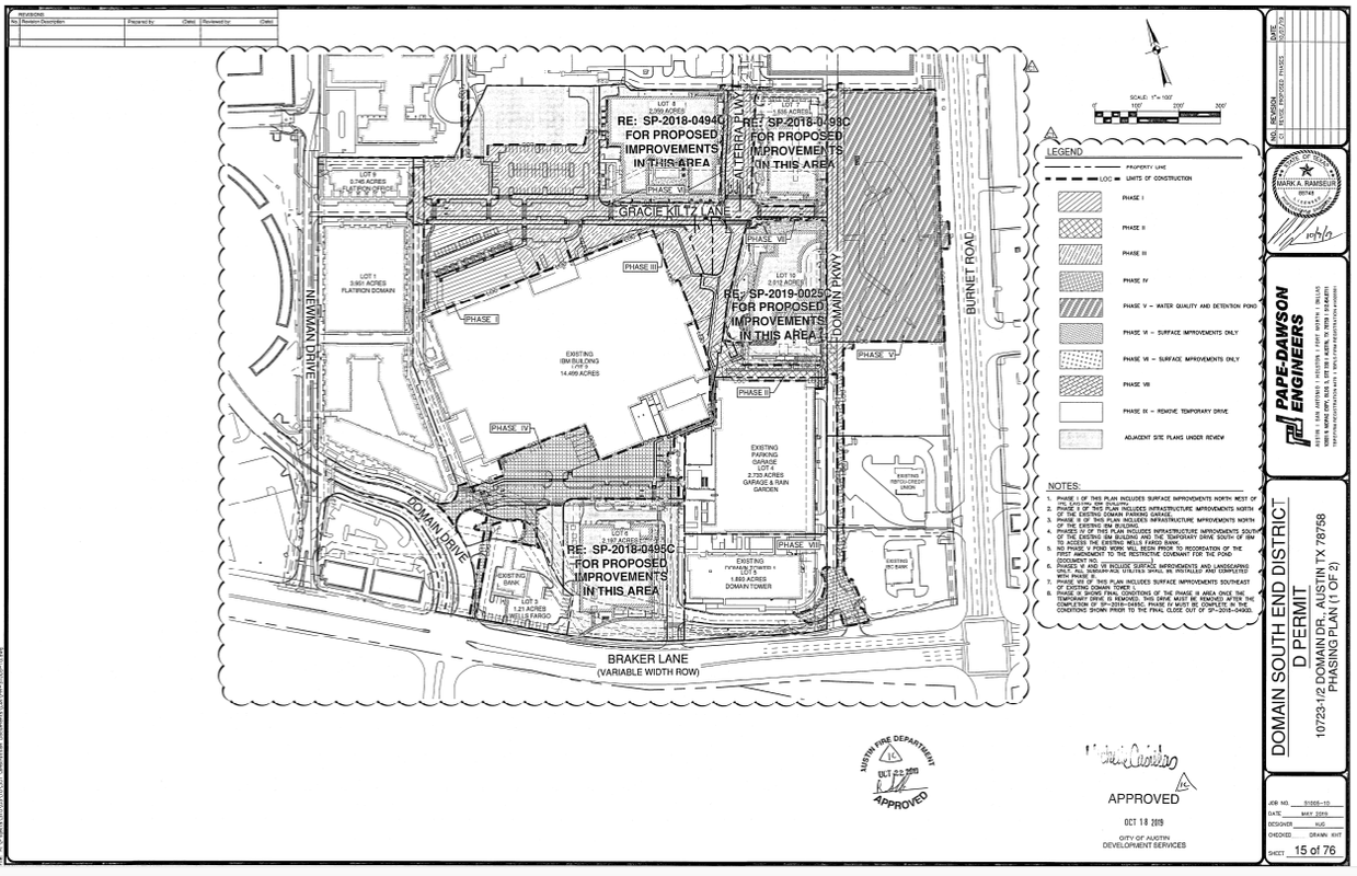 Here is a picture of the phasing plan for the South End District as far as the infrastructure to support the towers. We are concerned about phase4 on this photo (south side). No idea how to reach the parking garage or reach it without any additional flat tires. Some of all of phases4 and on need to be done before they can start Tower 3.
