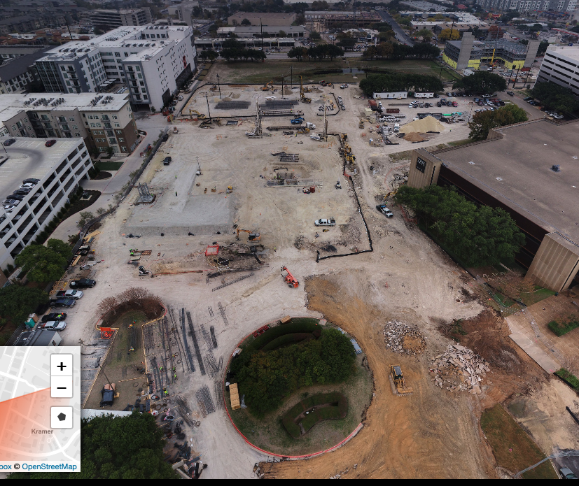 This is from the morning of the 20th. In the afternoon of the 20th, the circle of trees/bushes were cleared and a second crane base was installed for the Bowen in the hole to the right of the first crane base.
