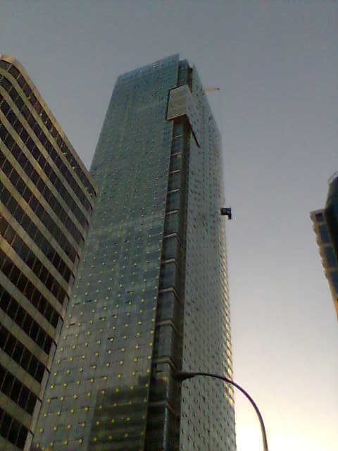 I am thinking based on what was said earlier about the crane not going to be visible that maybe they might be putting up false walls that fold down to hide this ugly crane, and fold down when in use. I was also thinking this because from some of the drawings we have seen in the past the core looks higher than the glass panels on the outside. Which it doesn't look like now, but may be an optical illusion