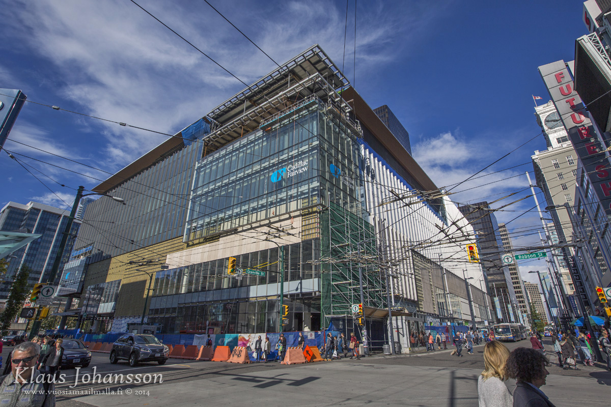 The Nordstom rendition is trendy and poor executed. In some ways similar to Telus Gardens but far less successful. It now clashes terribly with the TD Tower mostly due to the blue glazing. It screams James Cheng mediocre Vancouverism.