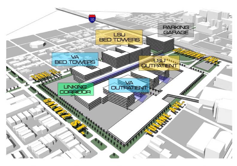 The city and the state have identified a possible site for the veterans hospital in the area bounded by Canal Street to the north, Tulane Avenue to the south and South Galvez and South Rocheblave streets on either side.