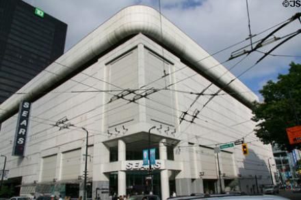 and its stark white ceramic look earning it the epithet "the biggest urinal in town" even BEFORE becoming Sears, and the slowly-descending green slime on the roof .... That people are now giving the eclectic (being polite) but reflective replacement The Bronx Rasberry.
