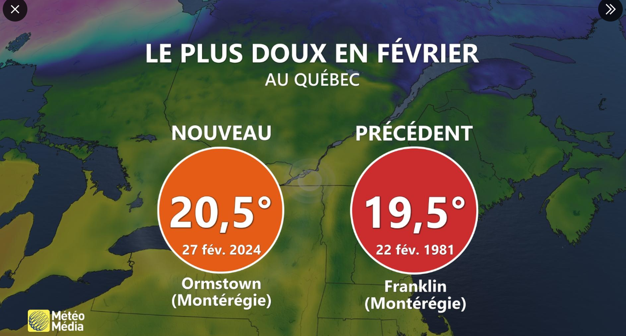 Apparently, Ormstown reached 20.5C (government station) which is unofficially a new provincial record for February. St Anicet and Ormstown are maybe about 20 km from each other both close to the US border.