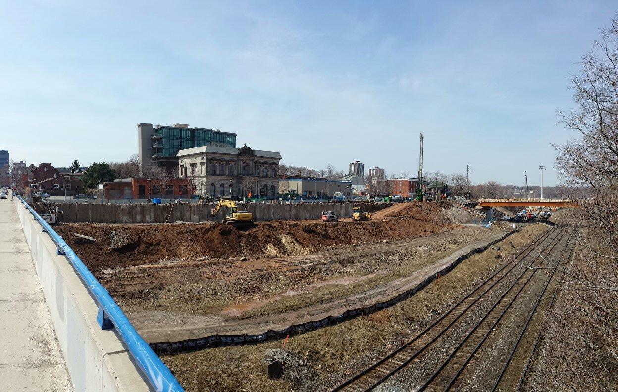 A contract crew from Loc Pave Construction Limited has been working at the site just east of the MacNab Street North bridge where Metrolinx is building a two-storey GO station. It will also include a platform that extends under Bay Street North.