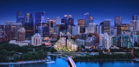 Image with caption: "Waterfront by Anthem Properties Group is a collection of 10 buildings along the Bow River in downtown Calgary (CNW Group/Renu Bakshi)". Image available at: