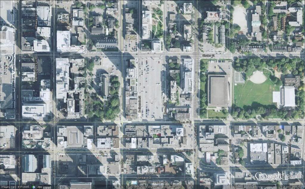 our current biggest parking lot in the downtown core is one on queen street between church and jarvis. 2.5 acres, and with no current plans for it.