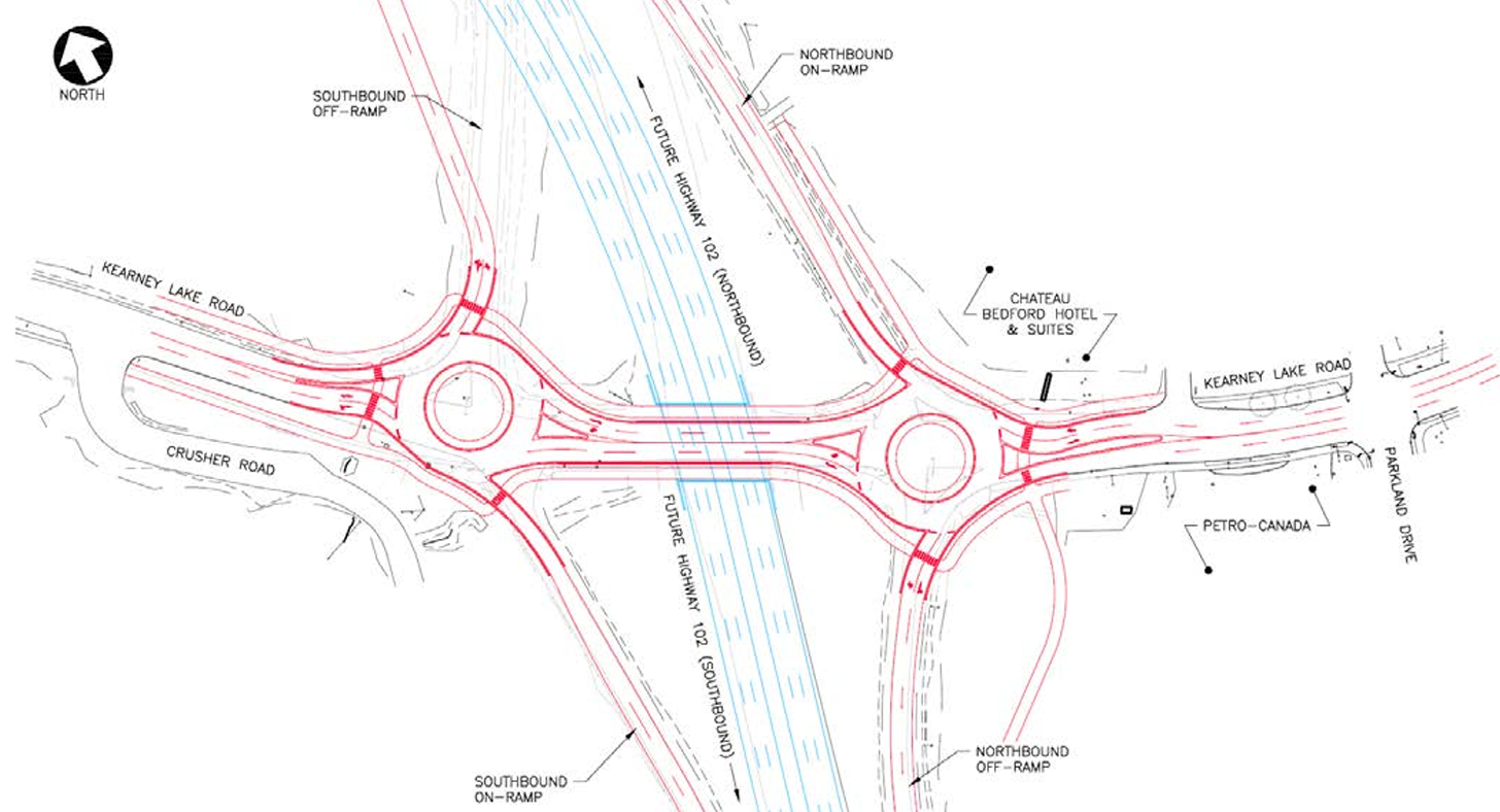 Upgrades are being planned for the interchange where highways 101 and 102 meet near Bedford. On Highway 102, Exit 2 at Kearney Lake Road and Exit 3 at Hammonds Plains Road will also be upgraded to improve efficiency and safety.